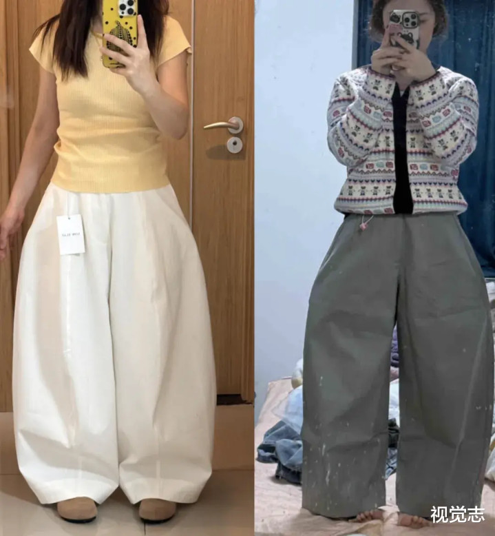 另一个让广大女生头疼的是裤腿。今年流行的阔腿裤设计,裤腿宽得能塞进两个人,让很多女性走起路来都有扫地机器人的效果。
