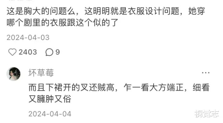 去年《甄嬛传》中眉庄的扮演者斓曦参加了一场新中式礼服走秀,后来被网友吐槽不好看。有网友说这是因为她身材不好,但明眼人能看出来,其实是服装版型的问题。