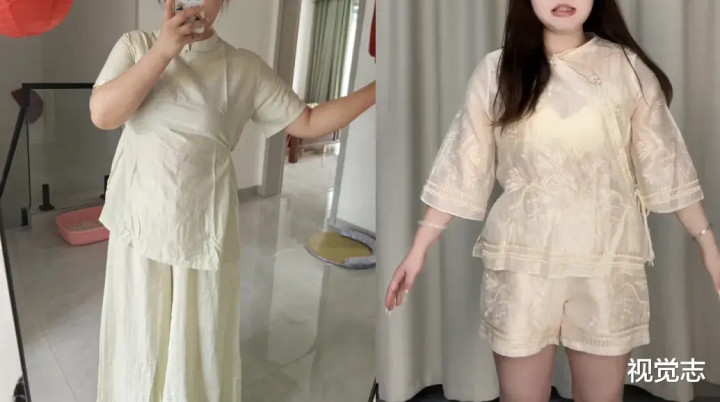 现状就是,很多新中式服装不仅在面料选材上大打折扣,设计上更是奇葩无脑,再加上消费者家里没有滤镜和灯光的加持,基本是谁穿谁翻车。